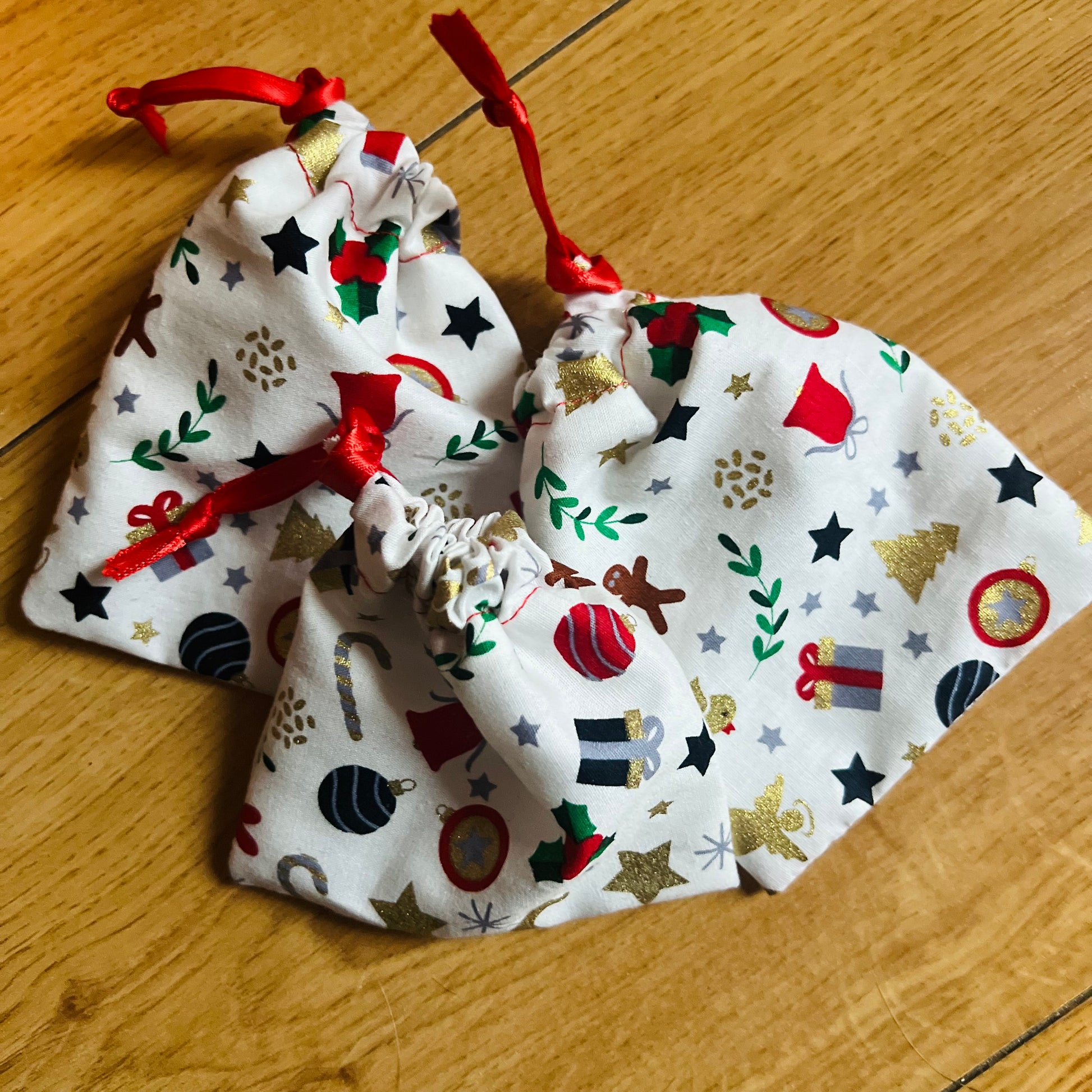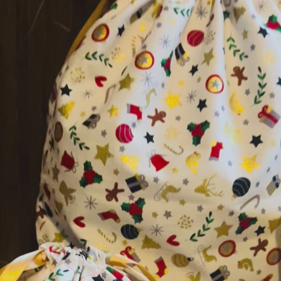 Sie sind aus Baumwollstoff gefertigt und mit einem Schiebebandverschluss versehen, wodurch sie Ihren Geschenken eine persönliche Note verleihen.