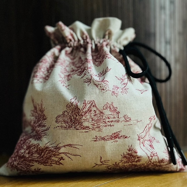 Wasserdichte Beuteltasche aus französischem Jouy-Canvas 28 x 24 cm