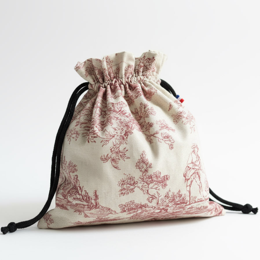 Toile de Jouy, hergestellt in Frankreich : Unser Beutel ist aus französischem Toile de Jouy gefertigt, einem zeitlosen und eleganten Stoff, der Ihrem Alltag einen Hauch von Raffinesse verleiht.