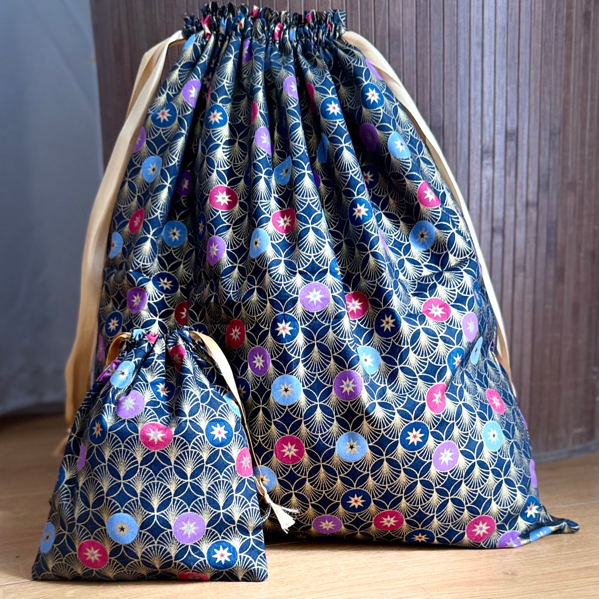 Les Pochons cadeaux en tissus, 100% coton imprimé, sont l'accessoire parfait pour emballer de manière écologique vos petits cadeaux bijoux ou objets précieux.